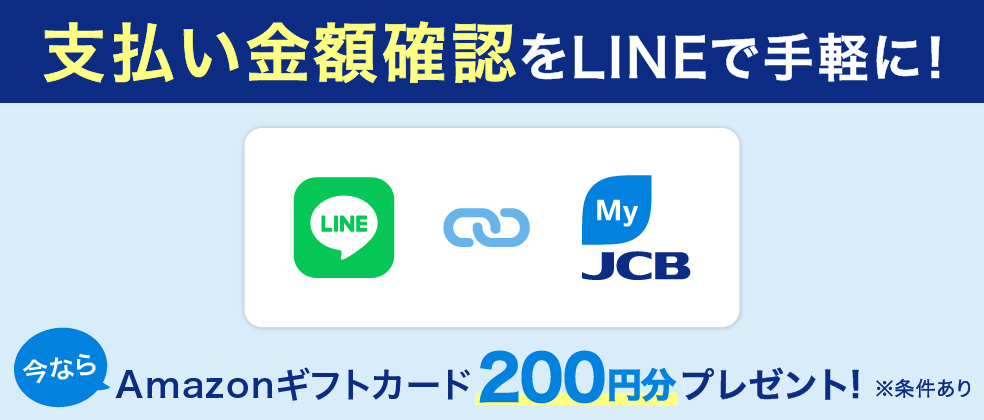 「MyJCB LINE公式アカウント」は、JCB会員向けの情報を発信するLINE公式アカウントです。MyJCB IDとID連携をすることで、LINEで支払い金額の確認が手軽にできます。